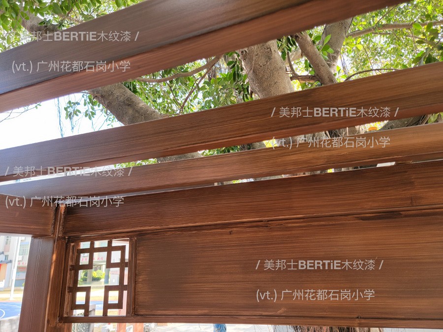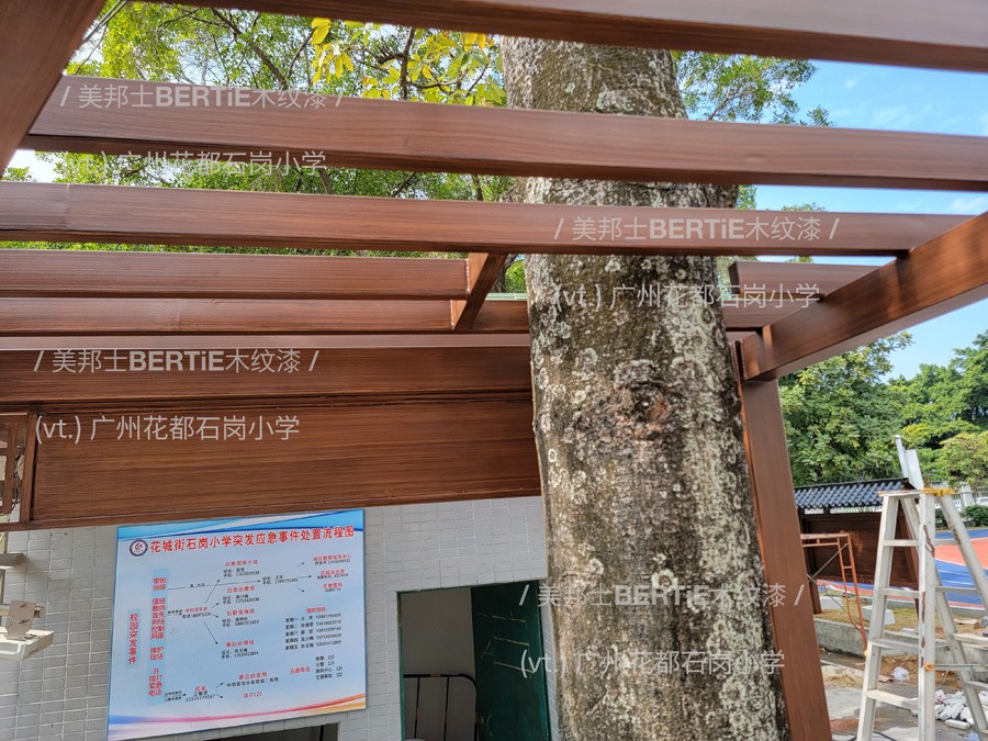 广州花都石岗小学镀锌管木纹漆