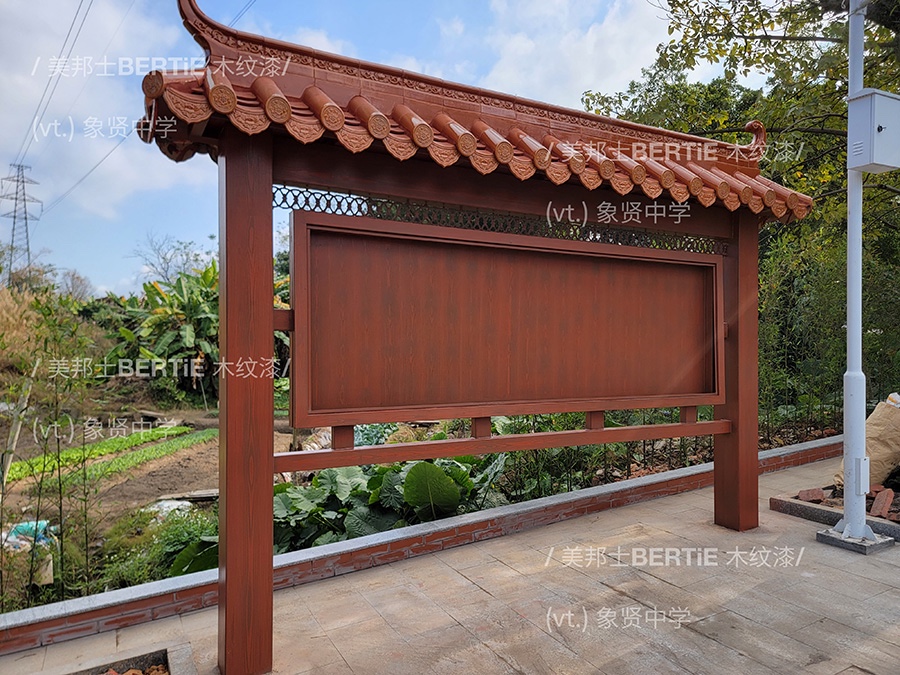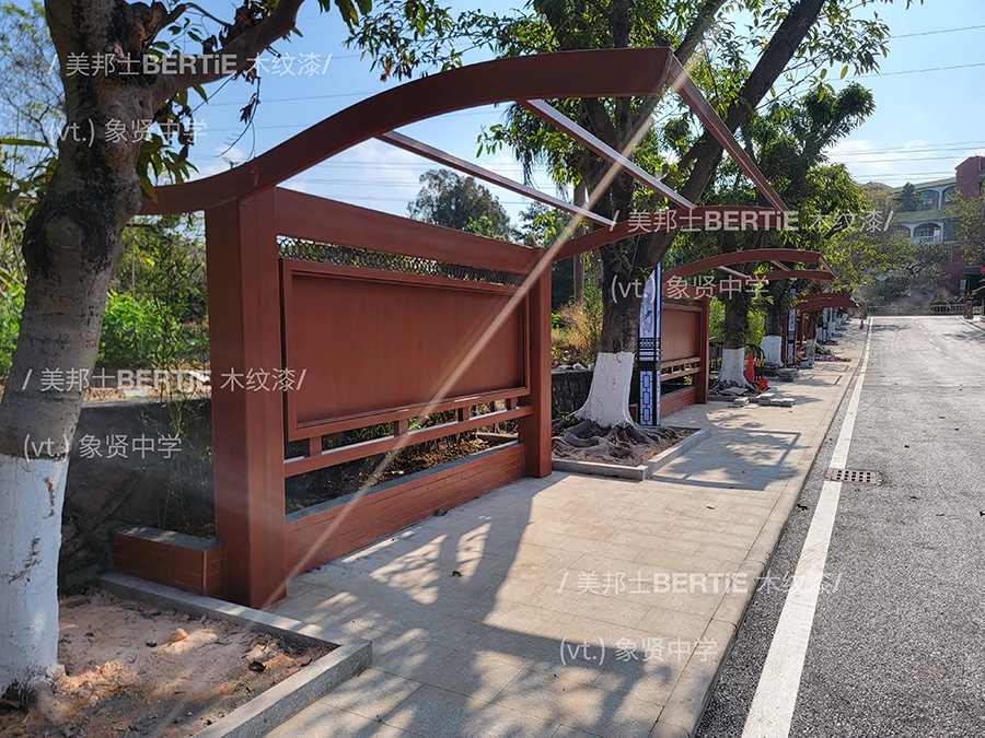 广州象贤中学二期宣传栏铁管木纹漆